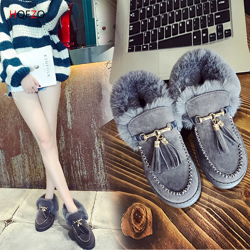 Женские меховые мокасины отлично сочетаются с вязаной одеждой, джинсами и классическими брюками.