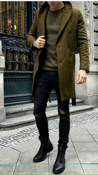 Но важно, чтобы и ботинки в этом образе были в военном стиле, а не в байкерском или каком-то еще. Еще один отличный вариант – мужское пальто-бушлат.