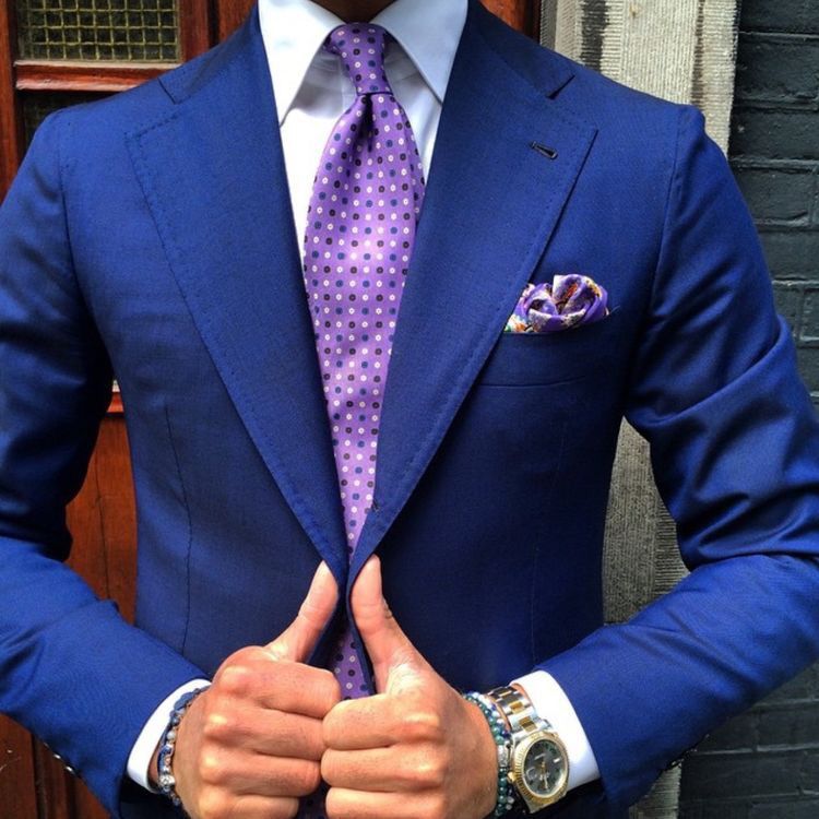 Костюмы синего цвета отлично сочетаются с рубашками и галстуками различных расцветок, что открывает неограниченные возможности для эксперимента.