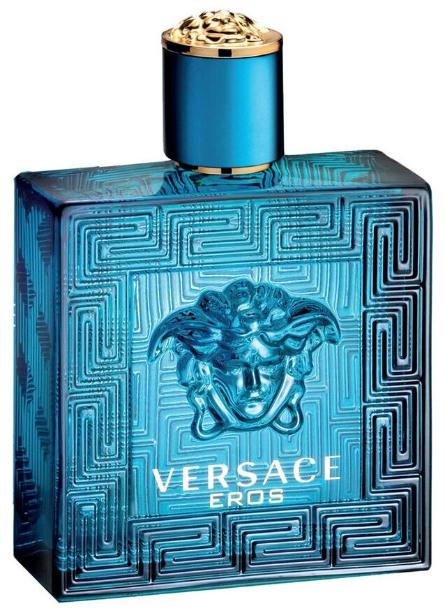 Аромат этого парфюма был назван в честь греческого бога любви и сына богини Афродиты Эроса . Эрос был создан Аурелиеном Гишаром из Givaudan. Аромат доступен в объемах 50 и 100 мл в концентрации Eau de Toilette. Флакон духов Eros изготовлен из стекла бирюзового цвета с головой Медузы на корпусе флакона и на его крышке.
