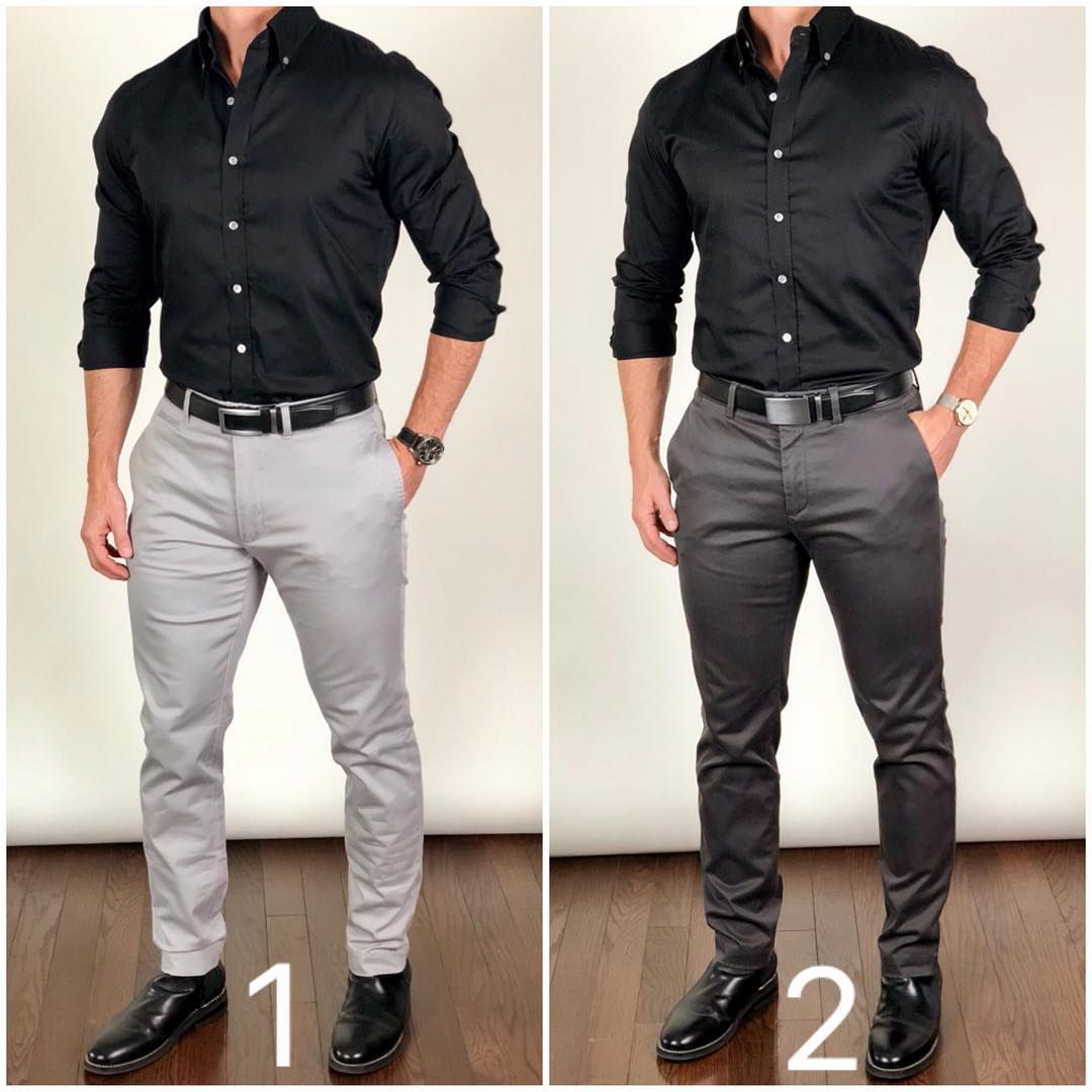 Сорочка найдется в гардеробе каждого мужчины, даже если он не терпит строгий деловой стиль и не ходит в офис. Образы с рубашкой всегда получатся элегантными и брутальными. Под темные брюки стоит подобрать сорочку насыщенной палитры или с узором. Эффектно смотрятся с серыми брюками монохромные сорочки.