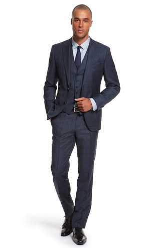 Черные кожаные туфли дерби СохранитьУдалитьСовременным молодым людям, которые предпочитают быть в курсе последних тенденций, советуем взять на вооружение это сочетание темно-серого костюма в шотландскую клетку и галстука. И почему бы не привнести в этот лук на каждый день чуточку эффектности с помощью черных кожаных туфель дерби?