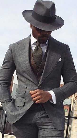 Темно-серый костюм-тройка в шотландскую клетку СохранитьУдалитьТемно-серый костюм в шотландскую клетку и галстук прочно обосновались в гардеробе многих парней, позволяя составлять неприевшиеся и комфортные луки.