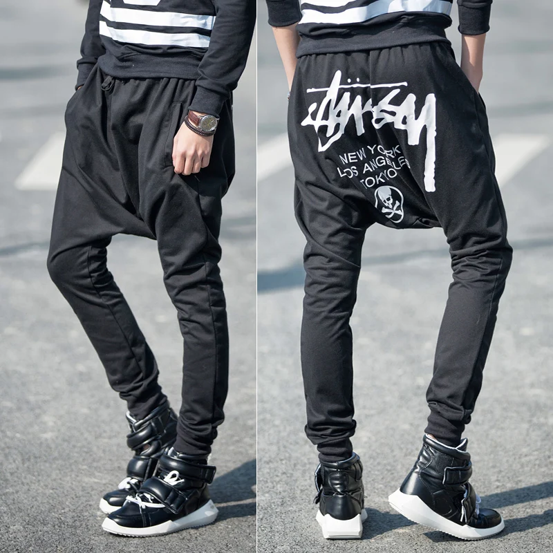 Мужские черные спортивные штаны с мотней с принтом черепа на резинке снизу, Турция