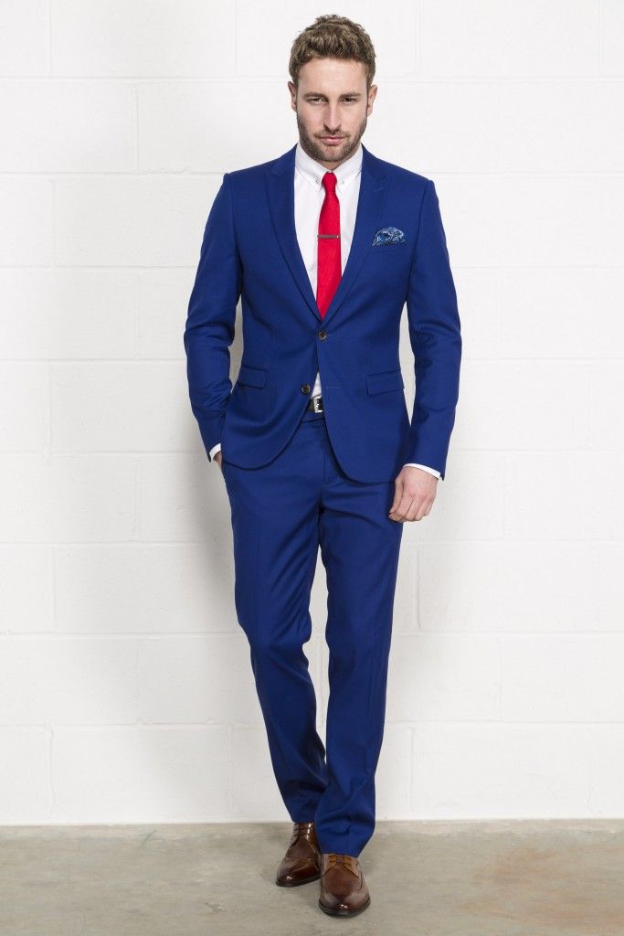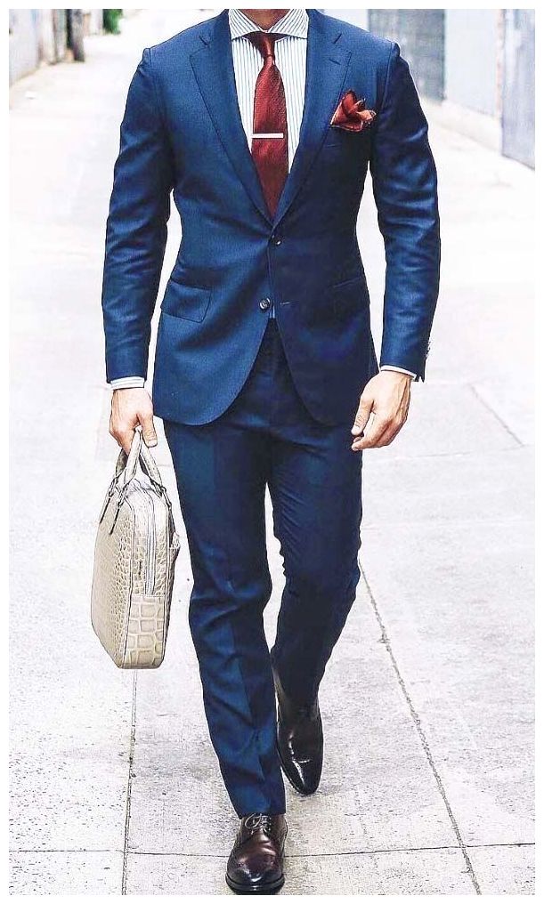 Больше всего костюм ярко-синего цвета подойдет смуглым мужчинам с русыми, темно-русыми или рыжими волосами.