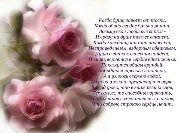 Ты – островок спокойствия в этом безумном мире. Ты – лекарство от душевных ран и усталости. Так пусть же Бог, одаривший тебя изумительной красотой и безграничной мудростью, будет добр и милостив к тебе! Пусть твои невинные глаза сияют, как тысяча алмазов! Пусть пленительная улыбка волнует мужские сердца! Пусть блестящие локоны послушно подчиняются неугомонному ветру, рисуя в воображении прекрасные картины художников эпохи романтизма! Верь в себя, верь в любовь, верь в мечту!