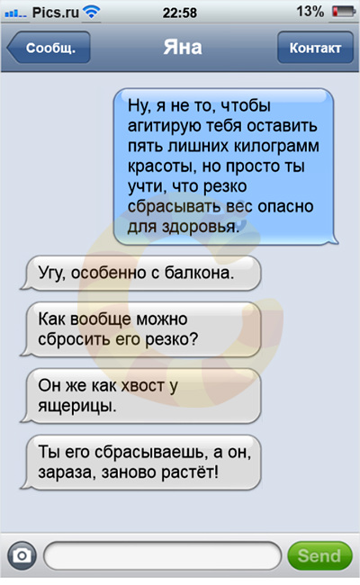 - Радуюсь каждой твоей СМСке как малолетка… Прекрати меня дурманить!