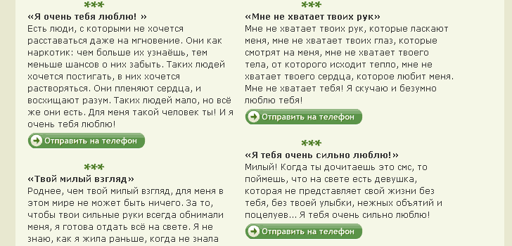Как написать любимой женщине смс, чтобы выразить всю глубину своих чувств и передать свое восхищение? Ведь так непросто своими словами объясниться в любви так, чтобы сердце девушки было тронуто, а на щеке блеснула слеза счастья. Но это и не нужно! Возьмите готовые идеи и напишите короткое сообщение, после которого любимая сама вам позвонит и попросит о встрече — смс, которое вызовет в ней взрыв чувств и заставит любить вас еще больше.