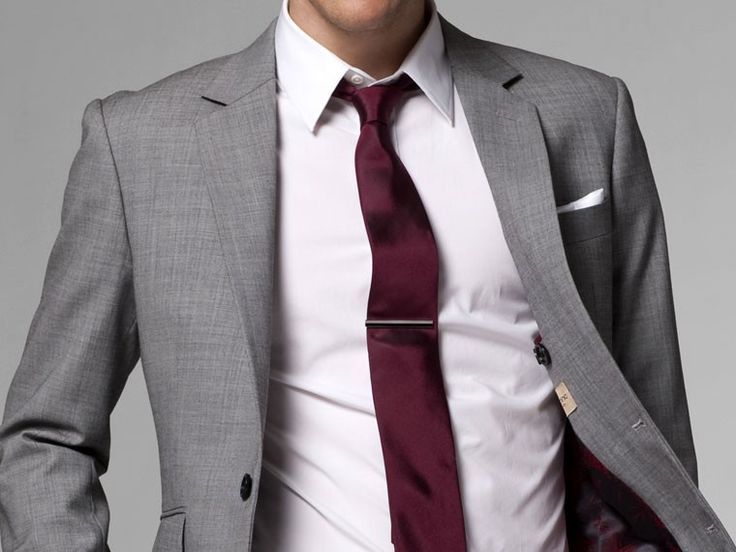 Розовый и серый хорошо сочетаются друг с другом, но чтобы по-настоящему подчеркнуть эту комбинацию, вам понадобится темно-бордовый галстук или даже темно-фиолетовый.