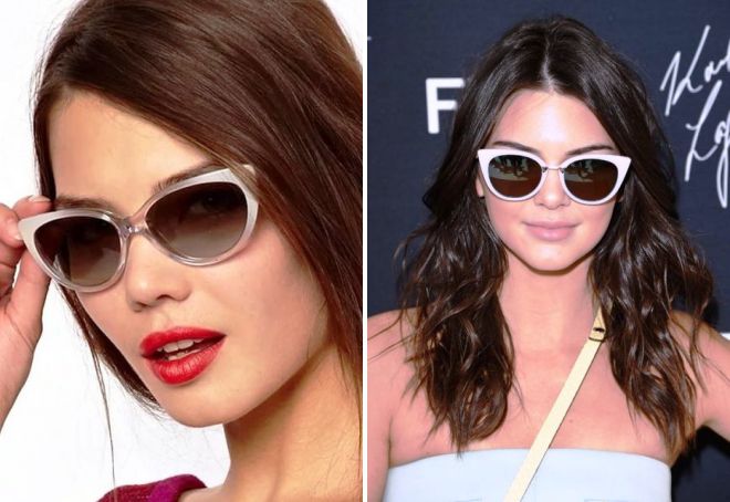 - Очки «кошка» или «бабочка». В отличие от предыдущей формы лица здесь предпочтительнее заостренные очки, привлекающие внимание;