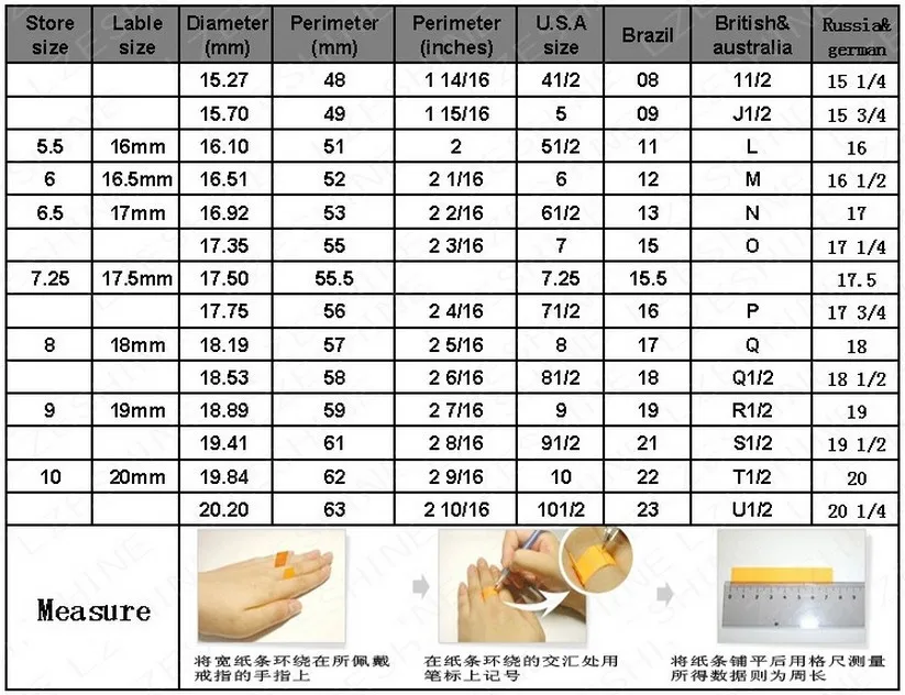 Размеры колец. Таблица соответствия: Китай, Россия, США, Европа