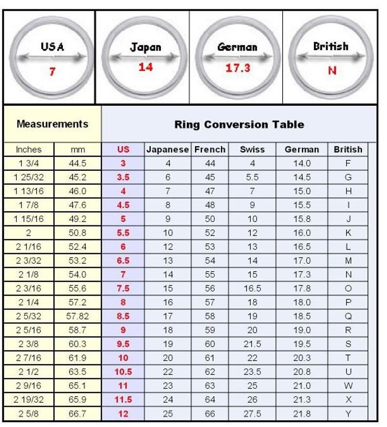 - Размеры колец. Таблица соответствия: Китай, Россия, США, Европа
