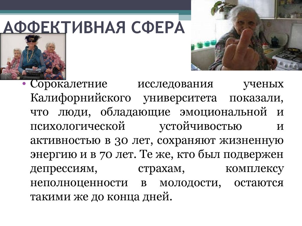 Маргарита Каштанова: Конечно! Особенно те, кто ведет активный образ жизни, работает, занимается общественной деятельностью. Некоторым и, правда, молодые могут позавидовать. Но часто это зависит именно от образа жизни людей, их уровня образованности, от их оптимизма.