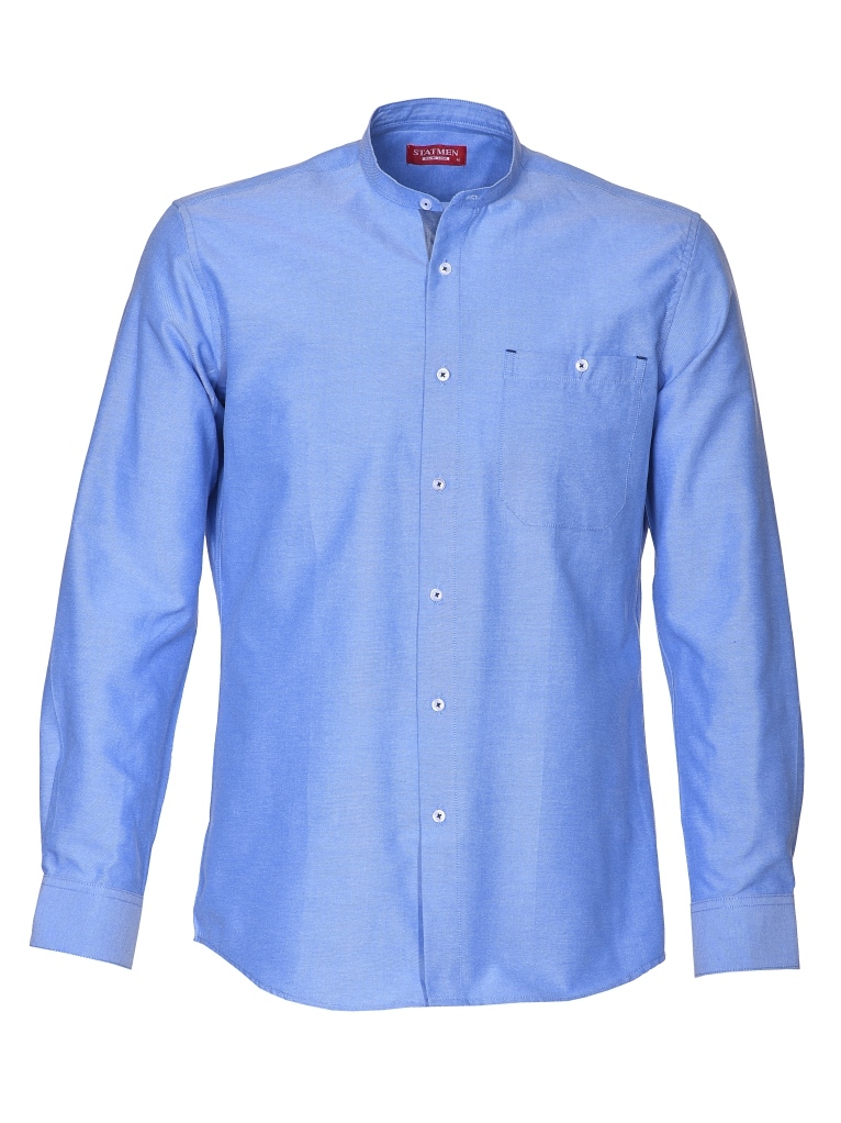 uaРазнообразием мужских рубашек сегодня уже никого не удивишь и, конечно же, их ассортимент просто коллосален. В гардеробе каждого найдется хотя бы один вариант рубашки, ее отсутствие больше выглядит странно. Такие изделия имеют разные внешние показатели и отличаются кроем, формой воротника, тканью, принтом или длиной рукава. Сегодня же мы поговорим о, не совсем привычном варианте рубашки, которая имеет воротник стойку, но без отложного хвостика.