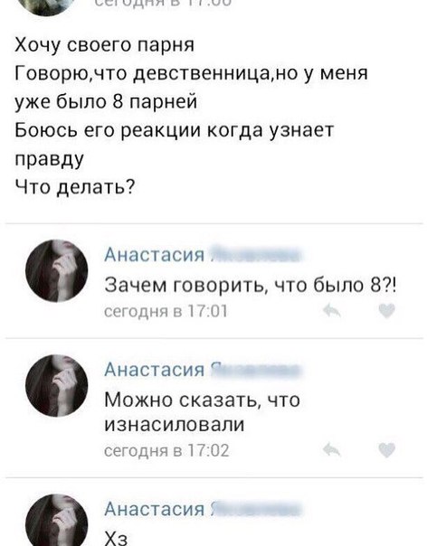 У меня тут возник один, общались где-то месяц, на одной из встреч за личным разговором я ему сказала, что ни разу не была с парнем. Что бы ты думала — на следующий день его как ветром сдуло! Понятно, что парню нужен был секс, или он просто решил не связываться с моими возможными тараканами, но, блин, мне-то обидно! Встреч на одну ночь я не хочу, не мое это, да и для первого раза точно не хотелось бы.