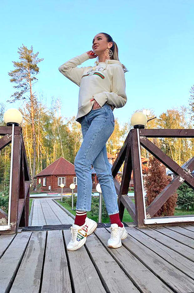 Еще один модный прием сезона — спортивные леггинсы в сочетании высокими носками, собранными в легкую гармошку. Смотрится очень эффектно и подходит не только для тренировок, но и для обычной прогулки по городу.
