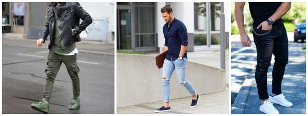 Чаще всего в стритстайле используются джинсы с узко закатанными штанинами, джогеры, а также чиносы. Нельзя надевать классические брюки или спортивные штаны. Цвет джинсов выбирайте любой – хоть чёрный, хоть красный. Главное, чтобы он сочетался с остальными вещами.