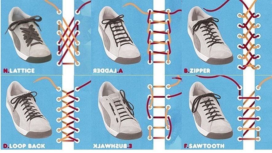 Шнурки служат не только для удержания спортивной обуви на ногах, но и для придания креативного вида. Модные тенденции диктуют свои условия, и виды шнуровки размножаются с большой скоростью.