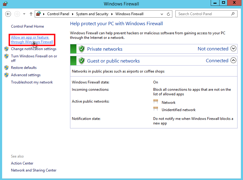 В разделе Входящие подключения вы найдете один флажок для Блокирует все входящие подключения, включая те, которые находятся в списке разрешенных приложений .