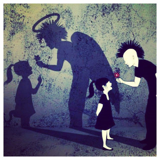 И с внешностью то же самое: плохой человек носит маску, личину, «харю», как это на Руси называли. И старается эту «харю» сделать предельно благообразной. Он маскируется под безопасный или приятный объект: играет роль. Улыбается ласково, придаёт лицу-личине заинтересованный или печальный вид, делает брови домиком, одевается так, как положено для той роли, которую он играет. И мы видим не настоящее лицо человека, а некий образ, который он нам транслирует. Этот образ может совершенно не совпадать с душой этого человека. Плохой человек специально носит маску. А хороший иногда не от большого ума, извините, надевает устрашающую маску. Или от стеснительности; комплексы тоже заставляют человека носить личину свирепого разбойника, например. Так малыши переодеваются в пиратов и грозно шевелят приклеенными усами…