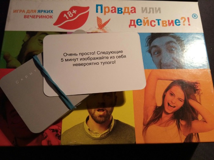Игра Правда или действие идеально подойдёт для компании друзей, готовой к провокационным вопросам и нелепым смешным поступкам. Откровенные разговоры и неловкие ситуации — скучать не придётся никому. В правилах трудно запутаться: каждый участник по очереди берёт карту из одной из четырёх колод и выполняет загаданное.