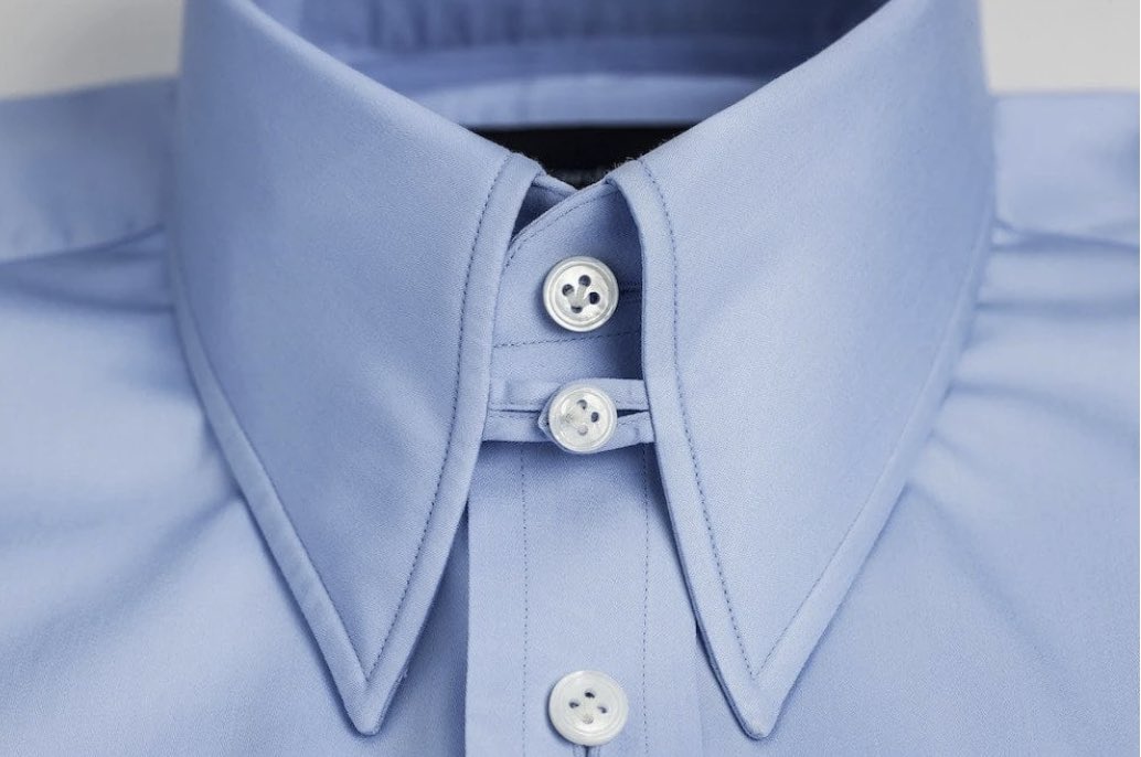 Мужские рубашки на пуговицах с прямым воротником — более формальный вариант воротника. Согласно dmarge.com, ошейники с прямым заострением имеют особый вид. Они «вырезаны по прямым линиям, которые заканчиваются точкой, и отличаются небольшим размахом». Кроме того, стиль «в основном ассоциируется с традиционной мужской классической рубашкой». В статье отмечается, что они отлично подходят для любых мероприятий, но чаще всего их можно увидеть на свадьбах и в офисе.