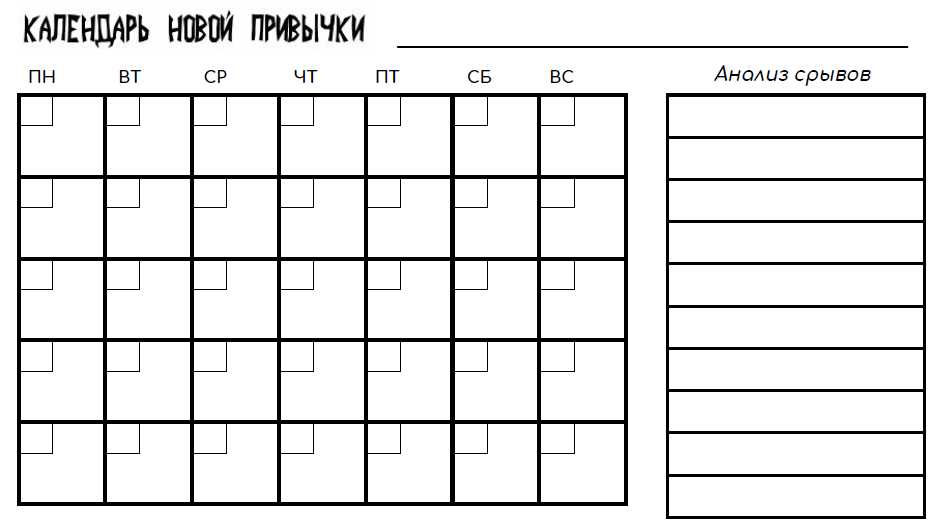 - фиксируйте каждый день, когда вы занимались привычкой. Ставьте галочки, пишите отчеты, раскрашивайте квадратики в календаре, клейте стикеры на стену.