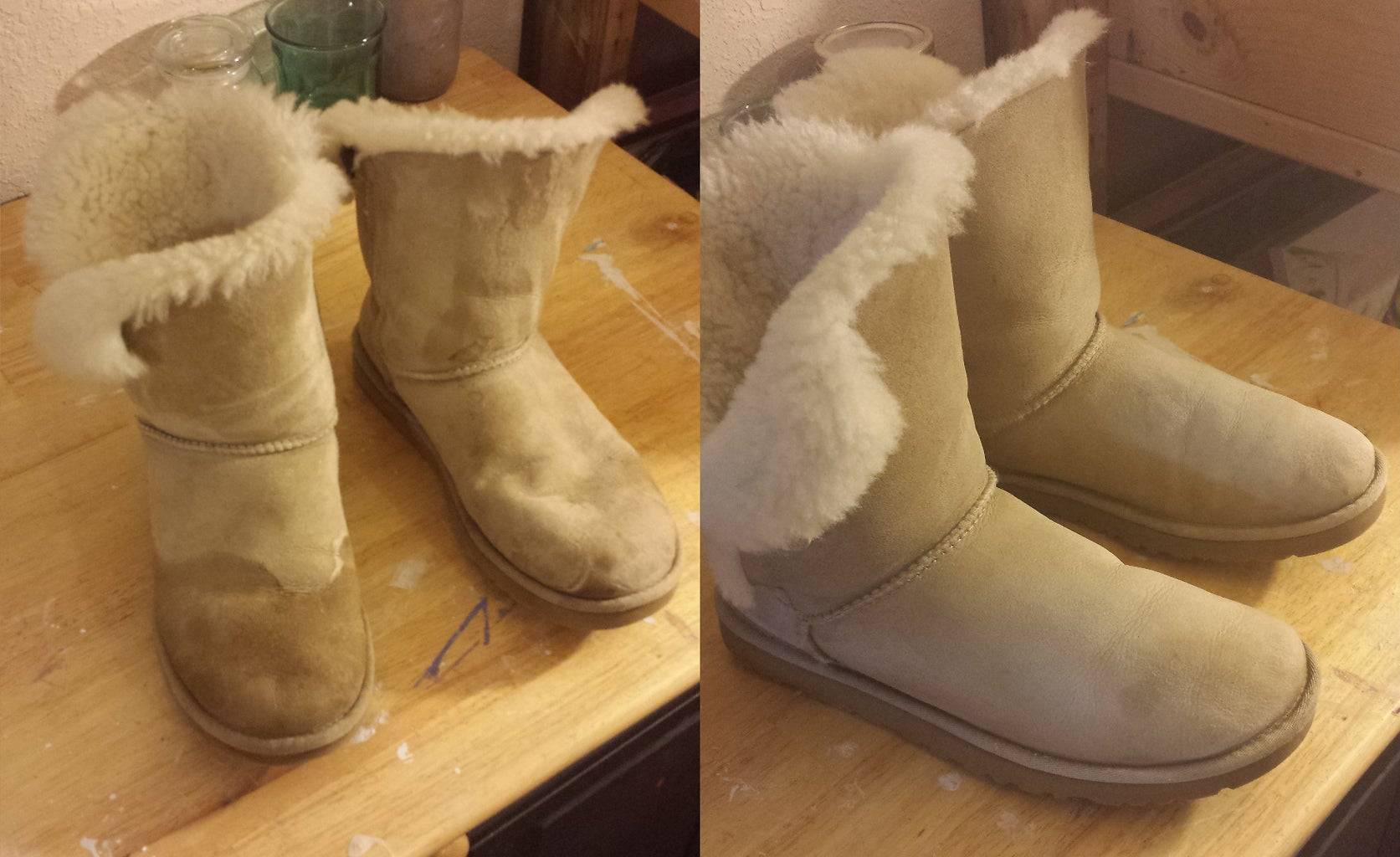 У такому разі для усунення світліших місць на коричневій замші можна натерти її кавовою гущею, а на світлій замші – натерти кашкою з розчиненого у воді тальку. Каву або тальк потрібно лишити на взутті на якийсь час, а потім залишки прибрати щіткою.