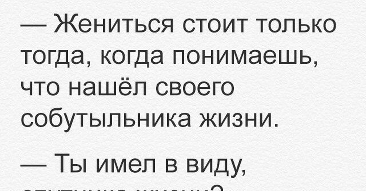 Человек готов вступить в брак, когда соблюдены две очень сложные вещи: он готов поверить в подлинную способность своего партнера отделить любовь от секса. И в то же время готов поверить в упрямую неспособность партнера разделить любовь и секс.