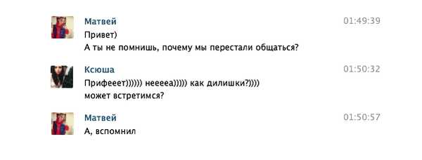 Подтверждение смешного сообщения — еще одна монета в копилку, которая также может закрыть все двери. Есть куча разных способов кроме «ХаХа» и «ЛОЛ» чтобы разрушить все, отвечая на недописанные сообщения, которые даже могли быть серьезными. В этом всём читается «ТЫ КЛАССНАЯ, БУДЬ СО МНОЙ!»