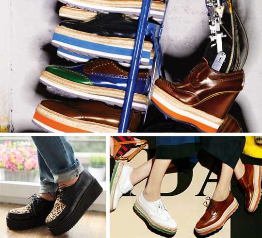 Криперсы (creepers) — это тип обуви, название которого происходит от английского crip (креп), что означает «толстая резина». Криперсы – это полуботинки на высокой сплошной подошве. Последняя может достигать 10-15 см. Они берут свое начало из солдатских послевоенных ботинок, а в 50-е годы криперсы были популярны у британских модников teddy boys. Сейчас криперсы активно используются трендсеттерами и представителями уличной моды для создания повседневных образов. Кстати, сейчас на высокой подошве могут производить и обычную, привычную всем обувь. Например, оксфорды и броги в таком исполнении смотрятся очень экстравагантно.