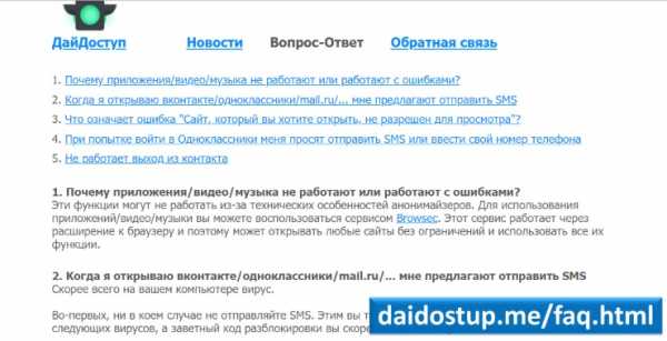 У вас могут возникать некоторые ошибки или сбои во время работы с сайтом daidostup.me. О самых частых неисправностях написано в разделе Вопрос-Ответ, поэтому настоятельно рекомендуем вам ознакомиться с его содержимым во избежание дальнейших недоразумений. Ссылка на раздел: «daidostup.me/faq.html» (смотрите верхний скриншот).