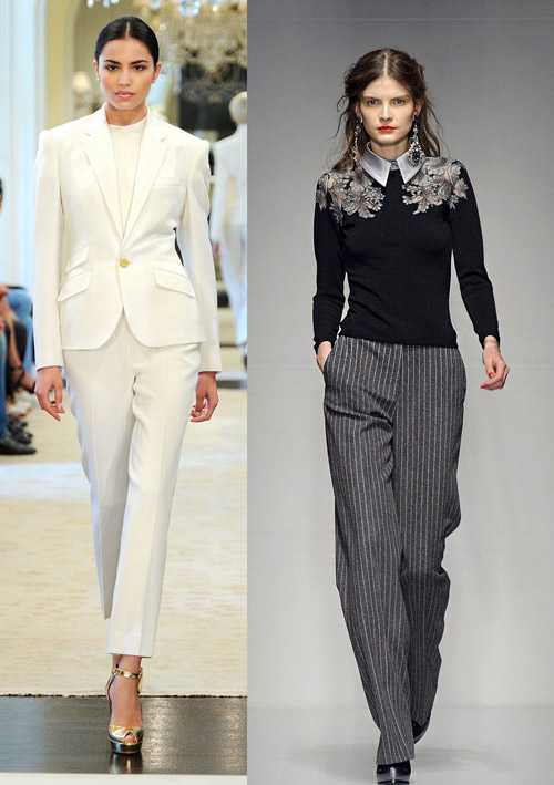 Это может быть двойка или тройка с двубортным или однобортным пиджаком – сейчас в моде оба варианта.