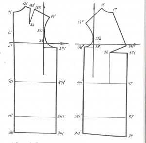 спинка – линия груди /31-33/ (горизонталь) и задняя линия проймы /33-13/ (вертикаль)