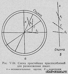 Лучевой способ может быть использован при размножении лекал отдельных деталей головных уборов и корсетных изделий, приращения размеров которых происходят в радиальном направлении (рис. V-46).
