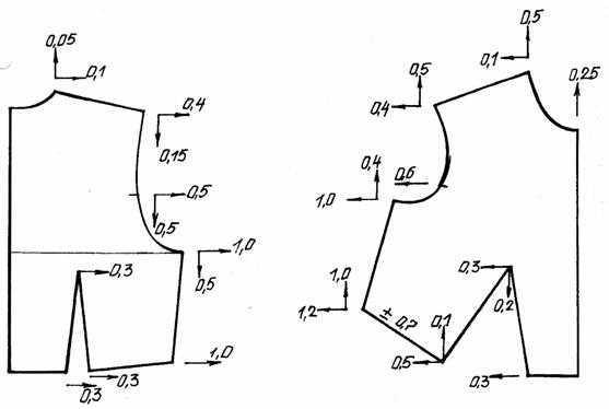 Типовые схемы градации лекал разрабатываются для плечевых и поясных изделий применительно к их типовому покрою.