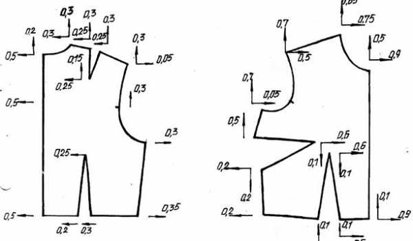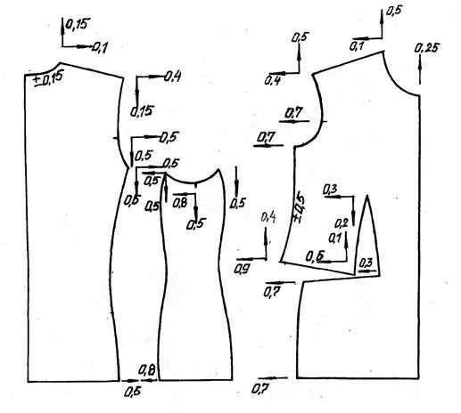 Переход от размера к размеру осуществляют посредством межразмерных приращений, которые дают к срезам лекал деталей оригинала среднего размера и роста.
