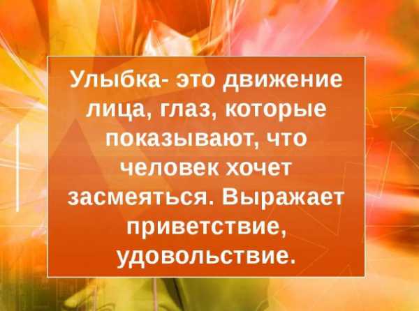 Приветствие – это выражение радости от встречи с данным человеком, проявление уважения к нему и пожелание благополучия, здоровья и приятного времени суток. Поэтому при виде знакомого, мы, кроме самого приветствия, улыбаемся и выказываем приязнь.