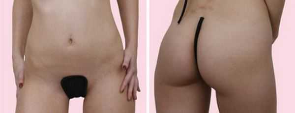 - G-стринги образуют небольшой треугольник сзади, который крепиться к поясу;