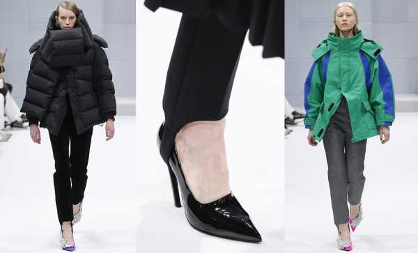 Из коллекции BalenciagaА что, удобная тенденция: штрипка на брюках фиксирует штанину у щиколотки, и та не задирается, когда вы одеваете сапоги. Носить такие брюки можно эффектно надев штрипку под каблук обуви, чтобы всем было видно. А более скромные натуры могут спрятать ее внутрь, чтобы было виднелись только края ремешков, — кому как больше нравится. И главное, с такой моделью холода нипочем. Так что, подвороты брюк и джинсов остались в прошлом!