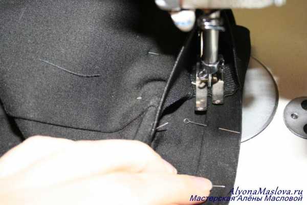 Сделать отмеловку на резинке и дать строчку, прикрепляя её. Выверните брюки на изнанку для удобного шитья.