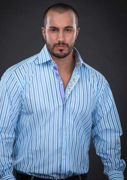 - Рубашка с воротником, края которого сильно разведены по обеим сторонам. При этом они могут быть срезанными, скругленными или заостренными. К подобным рубашкам подойдут шейные платки, широкие галстуки – это придает мужчине более импозантный вид.