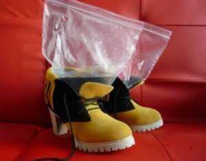 Таким образом вы сможете не только увеличить ширину, но еще и длину. И, самое главное, не стоит пытаться вытащить пакеты с еще неоттаявшей водой. Это может привести к тому, что туфли испортятся.