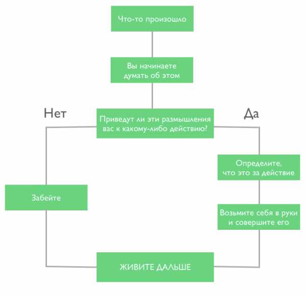 Вы замечаете, что стоило лишь холодно принять этот факт, как все предстало в совершенно другом свете! Вы наблюдаете, что ваша реакция на эту горькую мысль оказалась не такой ужасной, какой вы ее себе вначале воображали. «Ну, подумали и подумали, ну и что дальше?» – уже более спокойно рассуждаете вы.