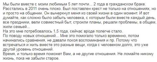 - не выполнять для него роль жилетки, но оставить возможность для общения: вы можете друг другу пригодиться, ведь вы так хорошо знаете друг друга; отвечайте на его звонки и звоните сами, но не слишком часто;