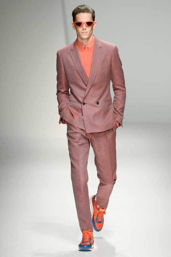 Сразу отметим то, что если ты хочешь выглядеть модно, классику отложи подальше. В силу того что выпускные вечера в нашей стране приходятся на лето, уместны будут костюмы из тонких натуральных тканей. Все дизайнеры будто сговорились и окрасили мужской костюм яркими красками. Думаю, это отличное решение для такого события как выпускной вечер в ярком костюме вы точно не останетесь незамеченным. Актуальными в новом сезоне стали оттенки желтого, красный, синий и не типичный для мужчин розовый и цвет фуксии. В моде остаются костюмы в ретро стиле 60-х с укороченными брюками. Так же актуальны костюмы в клетку и полоску, так же типичные для стиляг 60-х годов. Не обязательно облачаться во все желтое, ты смело можешь сочетать, например, синие брюки с желтым или малиновым пиджаком.