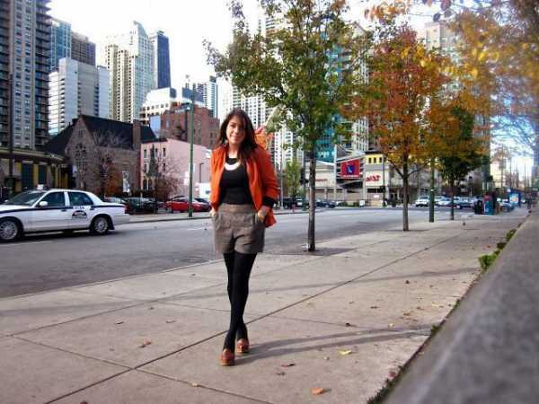 Для летнего сезона лакированные лоферы подходят не лучшим образом, зато они отлично вписываются в осенне-весенние луки. Можно смело комбинировать шорты, короткие юбки с плотными однотонными колготками без блеска или рисунков. Это сочетание всегда выигрышно и прекрасно. Материал юбки или шорт должен быть довольно плотным, – кашемир или твид подойдут как нельзя лучше.