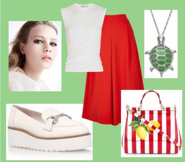 - Современные тренды позволяют сочетать с красным цветом оранжевый, розовый и даже зелёный. Поэтому к красным туфлям можно надевать наряды в этих цветах или одежду с принтом в оранжевых, розовых или зелёных тонах.