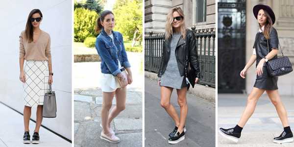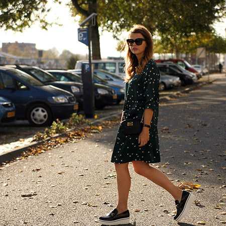 - Как ни странно, лоферы на высокой платформе неплохо выглядят с платьями из тонких шифоновых или кружевных тканей.