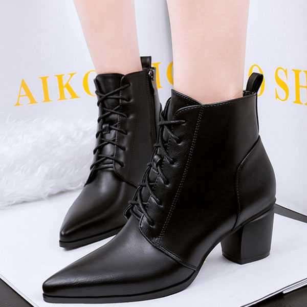 - Абсолютная лаконичность. Тонкий высокий каблук в соседстве с заостренным носком считается классикой и именно в ботинки такого фасона предлагают обуваться дизайнеры, если дама не стремится привлечь внимание к своей обуви. Тем не менее, ботинки из высококачественной натуральной кожи никогда не останутся незамеченными, каким бы простым кроем они не обладали.